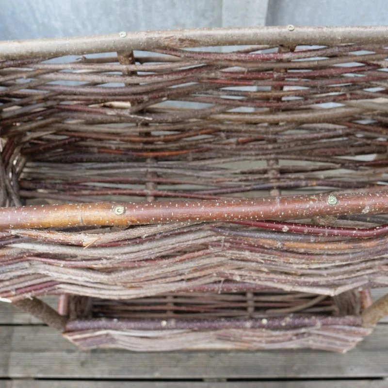 Les jardinières à étages avec tressage horizontal en bois de noisetier sont de magnifiques créations pour mettre en avant des mélanges de plantes et de fleurs.