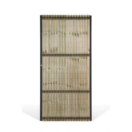 Porte Collfort simple aux larges dimensions de 203 cm pour 97 cm de hauteur. Idéale pour les entrées de portail ou jardin privatif, elle est à la fois généreuse et résistante. Possédant des lattes de 6 mm x 43 mm, ses treillis sont plastifiés et la quincaillerie est comprise. La qualité du pin rouge résulte d´une croissance lente des arbres en raison des conditions climatiques particulièrement difficiles et des types de sol naturels appropriés. Le pin rouge du Nord est plus sombre et plus saturé en bois de cœur et en aubier. Imprégné en autoclave pour lui assurer une solidité définitive, cela le protégera complètement contre tous les clivages du temps et les attaques de parasites comme les termites et autres insectes. Véritable porte d’exception aux dimensions uniques, elle éclabousse de toute sa grandeur tout en conservant une classe qui lui est propre.